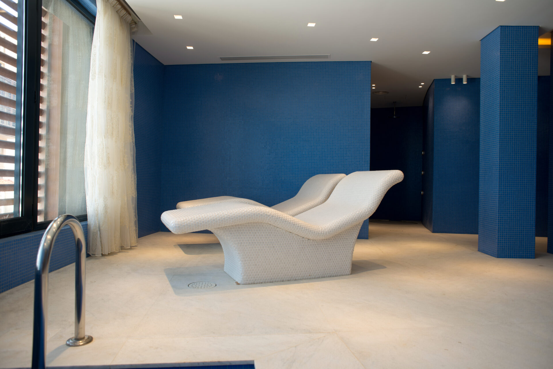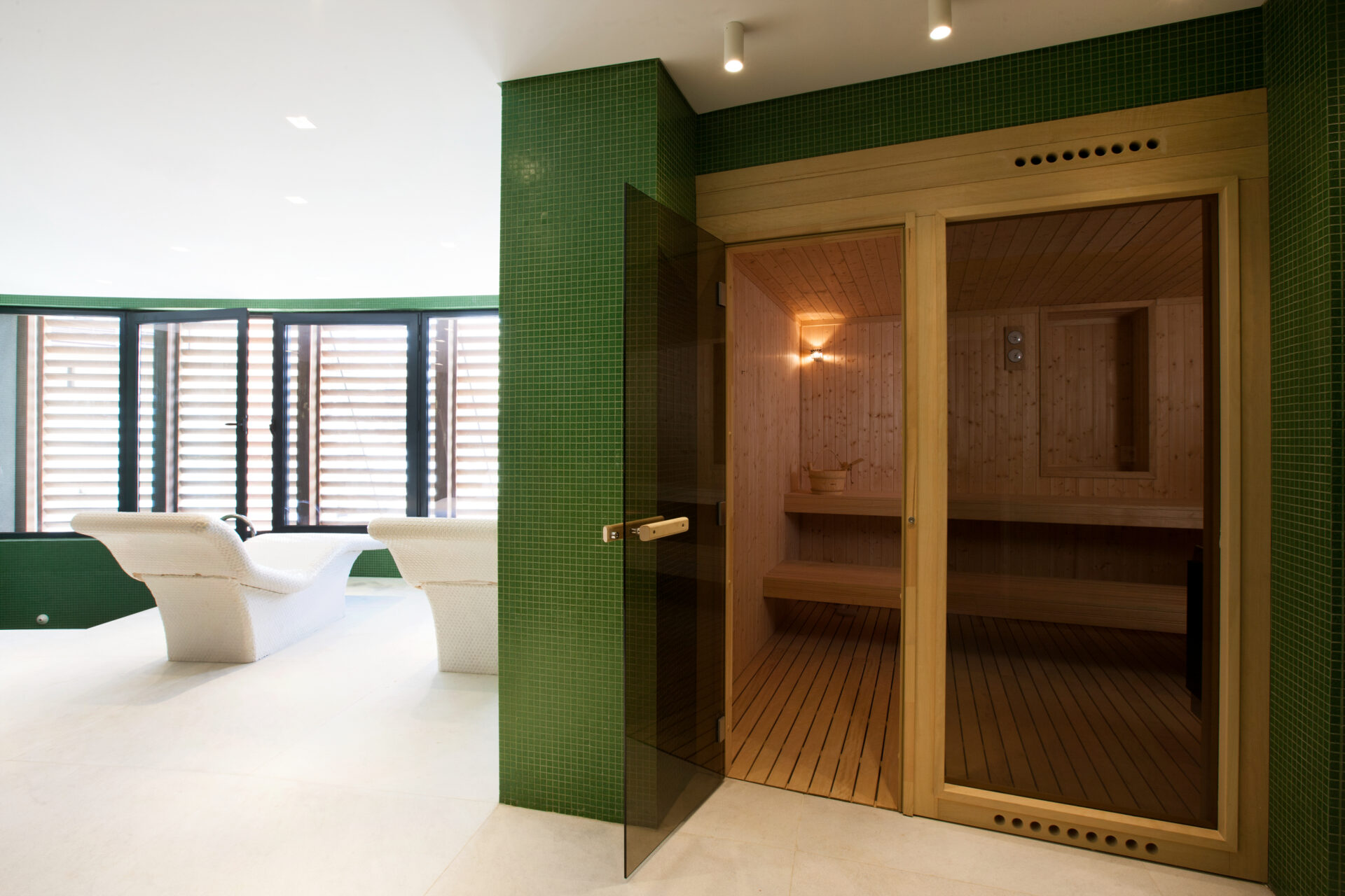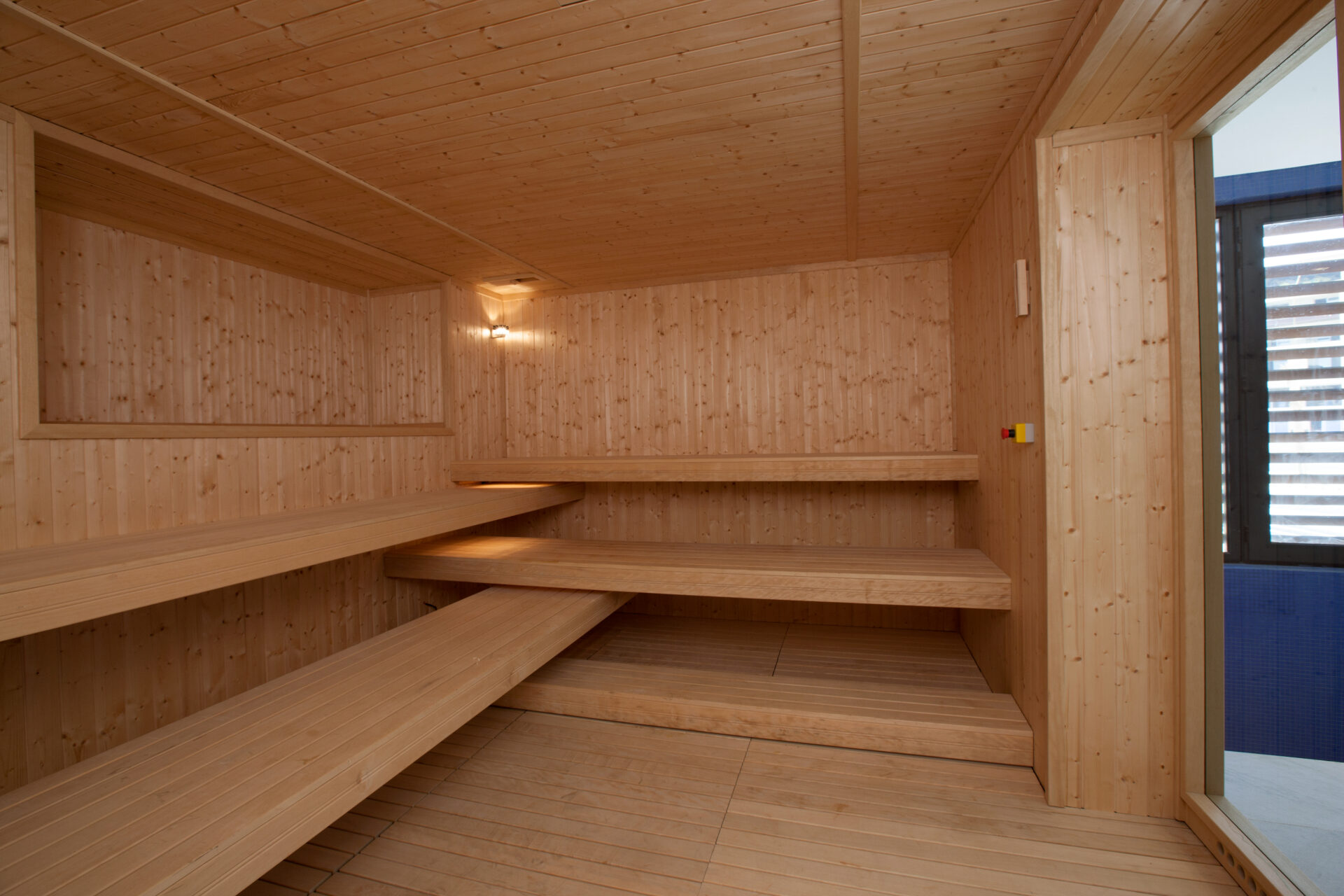 Kempinski Summerland Hotel & Resort In a large sauna we have the possibility to install overlapping benches concept, allowing a larger capacity of persons to enjoy their sauna bath.