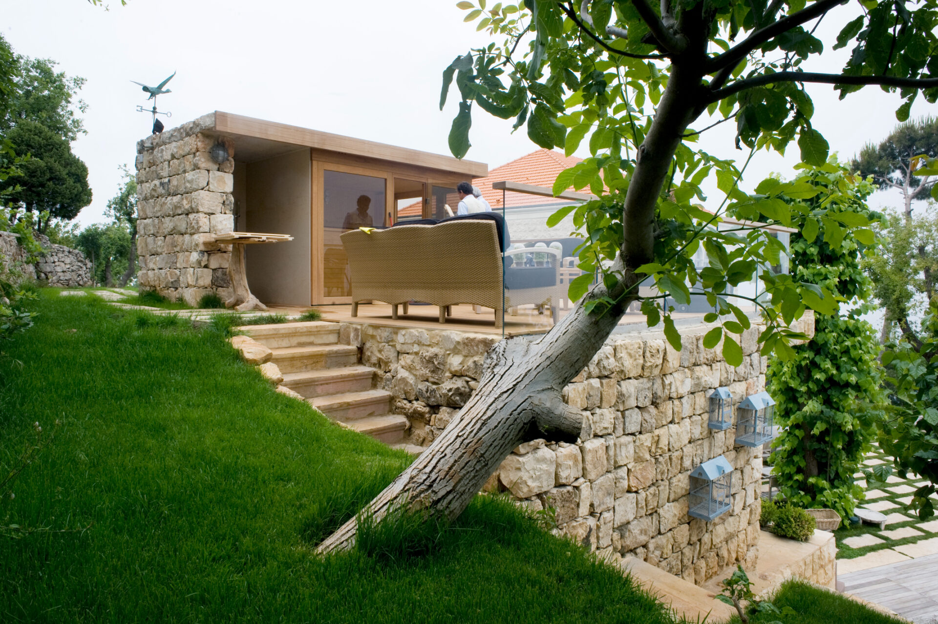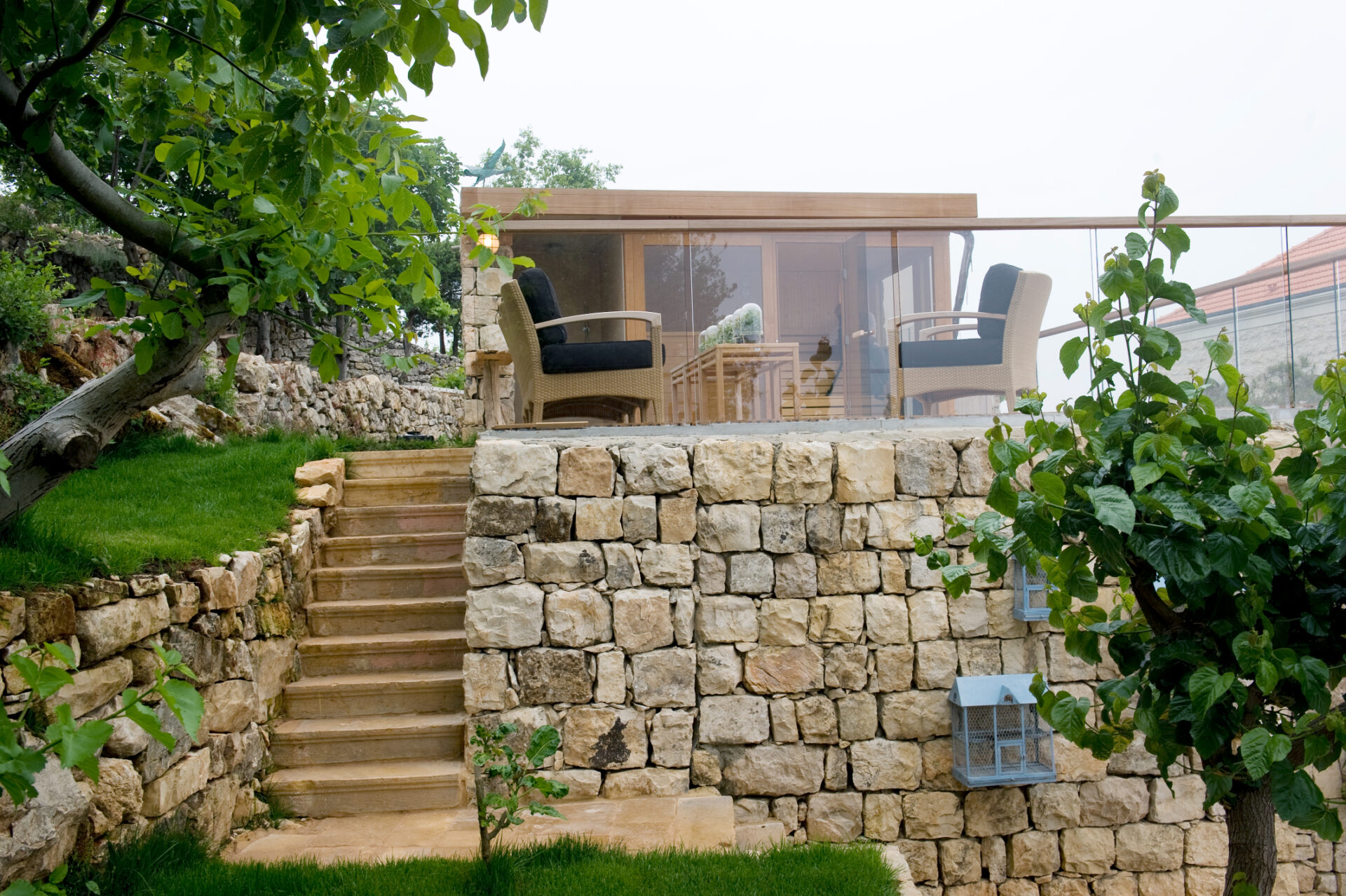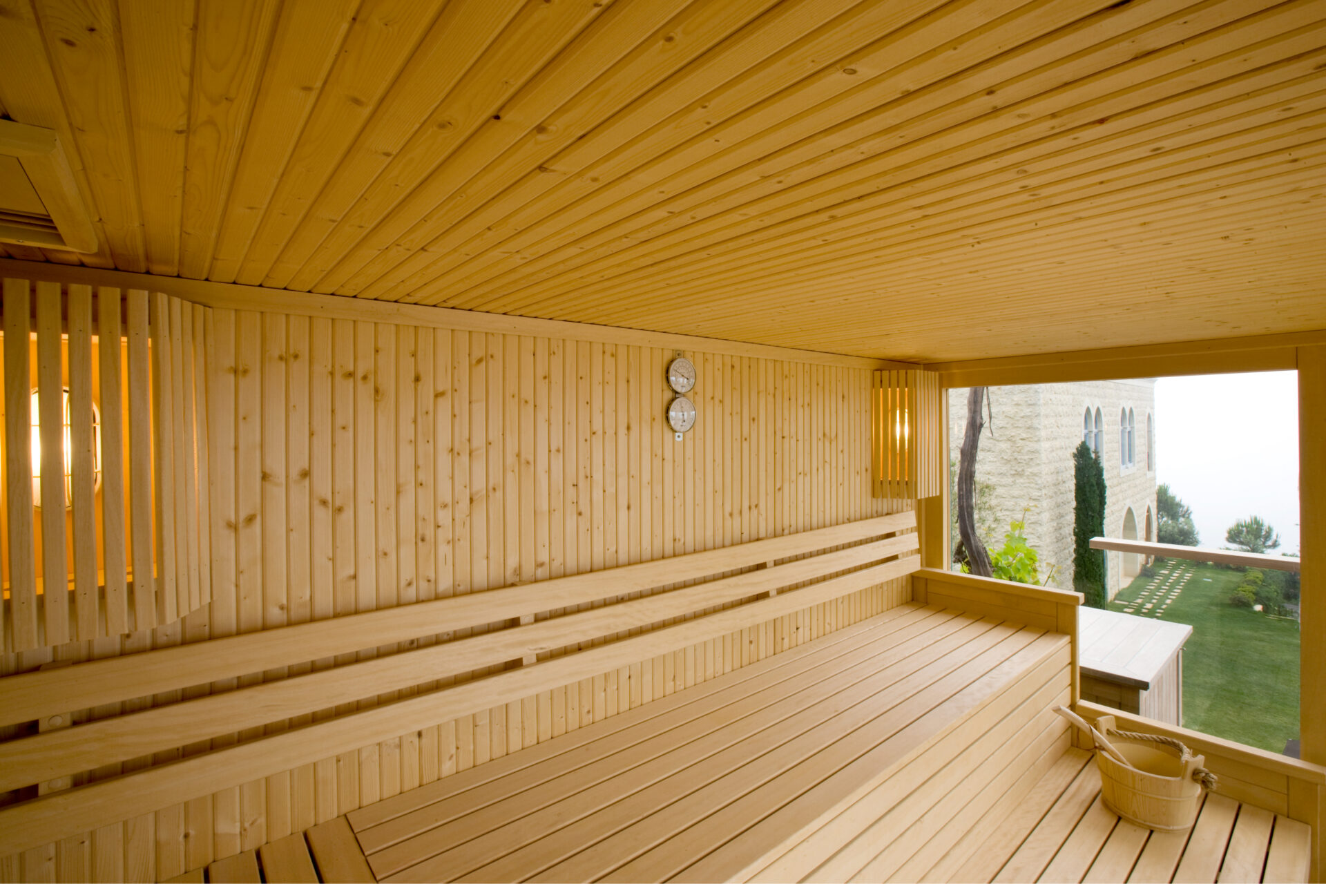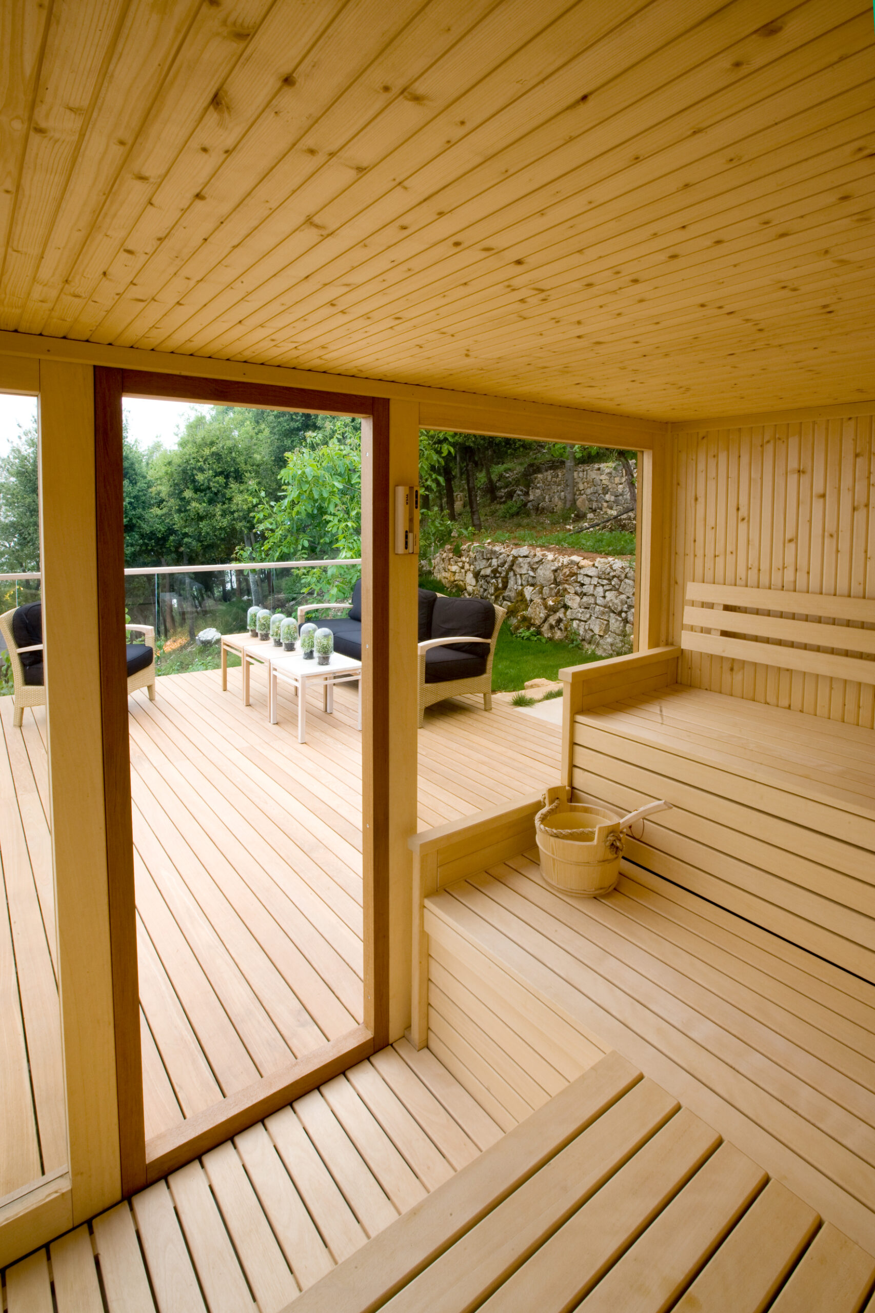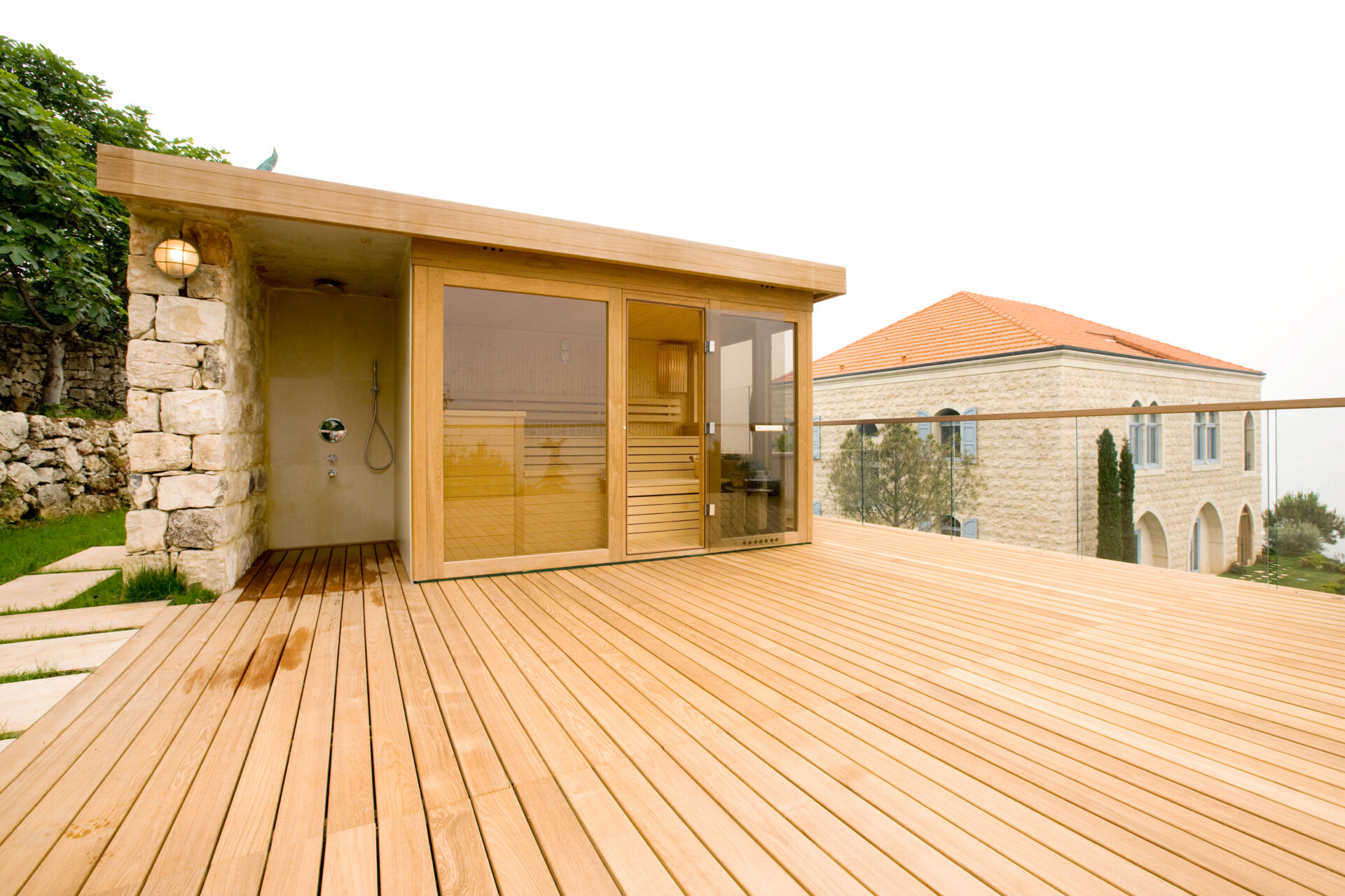 This special sauna cabin is in a residential area at an altitude of 1000 meters. It is an outdoor sauna installed under concrete shelter. The wall and ceiling are in Nordic Spruce wood, and the branches are in Aspen Wood. All the outside cladding is in Burma Teak wood which is naturally rich in oils and resins and contribute to its durability and water resistance. The highlight of this sauna is that during the winter session while being in the cabin at a temperature of 80 - 80 degrees Celsius we can enjoy the magnificent view of the snow at the outside.